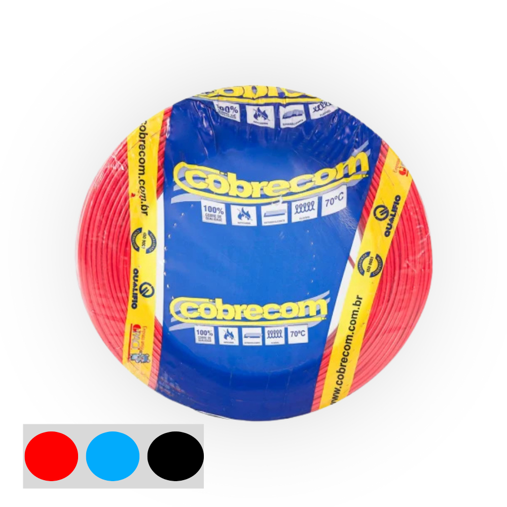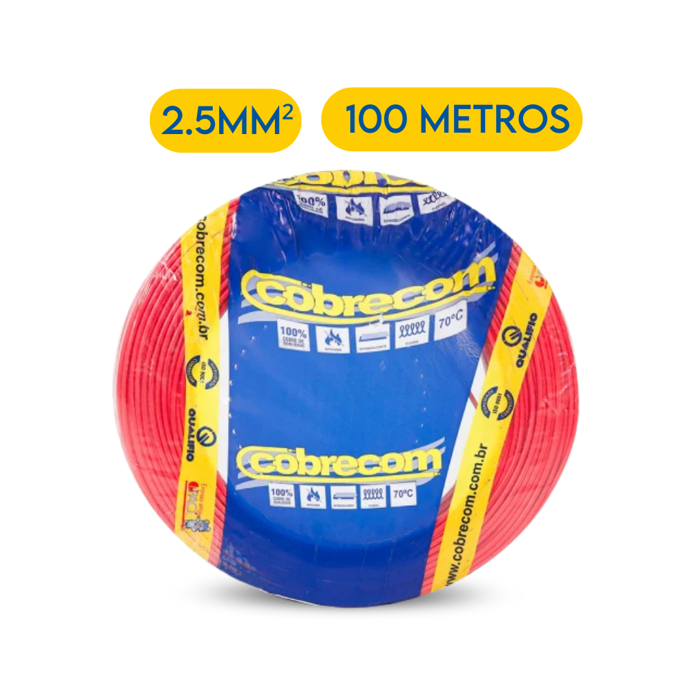 O Cabo de Energia 750V Flexicom Antichama da Cobrecom é ideal para instalações internas fixas em ambientes industriais, comerciais e residenciais, abrangendo aplicações em luz e força, painéis de comando, sinalização, e até mesmo nas instalações elétricas de automóveis e veículos motorizados. O cabo é produzido com materiais de alta qualidade e disponível em rolo de 100 metros, garantindo durabilidade e segurança. Com seção nominal de 2,50 mm², classe de encordoamento do condutor C4 ou C5, e diâmetro externo de 3,5 mm, o cabo possui espessura de isolamento de 0,8 mm. Com uma resistência elétrica máxima de 7,98 Ohms/km a 20°C, o cabo tem uma tensão de trabalho de 450/750V e suporta temperaturas de até 70°C. Essas características técnicas destacam a versatilidade e confiabilidade do cabo Flexicom Antichama para diversas aplicações elétricas.