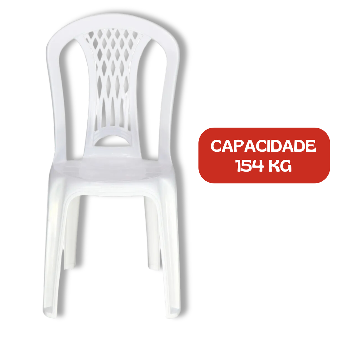 – Durabilidade: A cadeira é fabricada em plástico de alta qualidade, o que a torna resistente a impactos e ao desgaste diário;