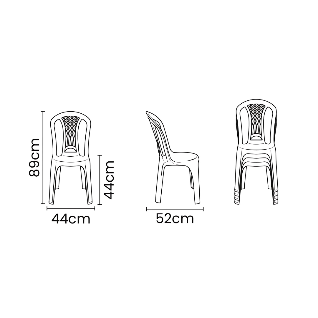 – Resistência ao Desbotamento: O plástico é resistente ao desbotamento, mantendo a aparência da cadeira por mais tempo;