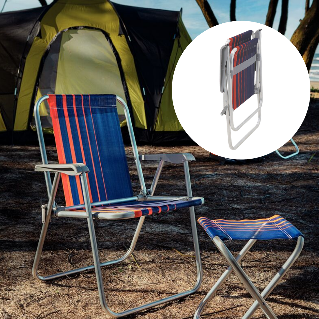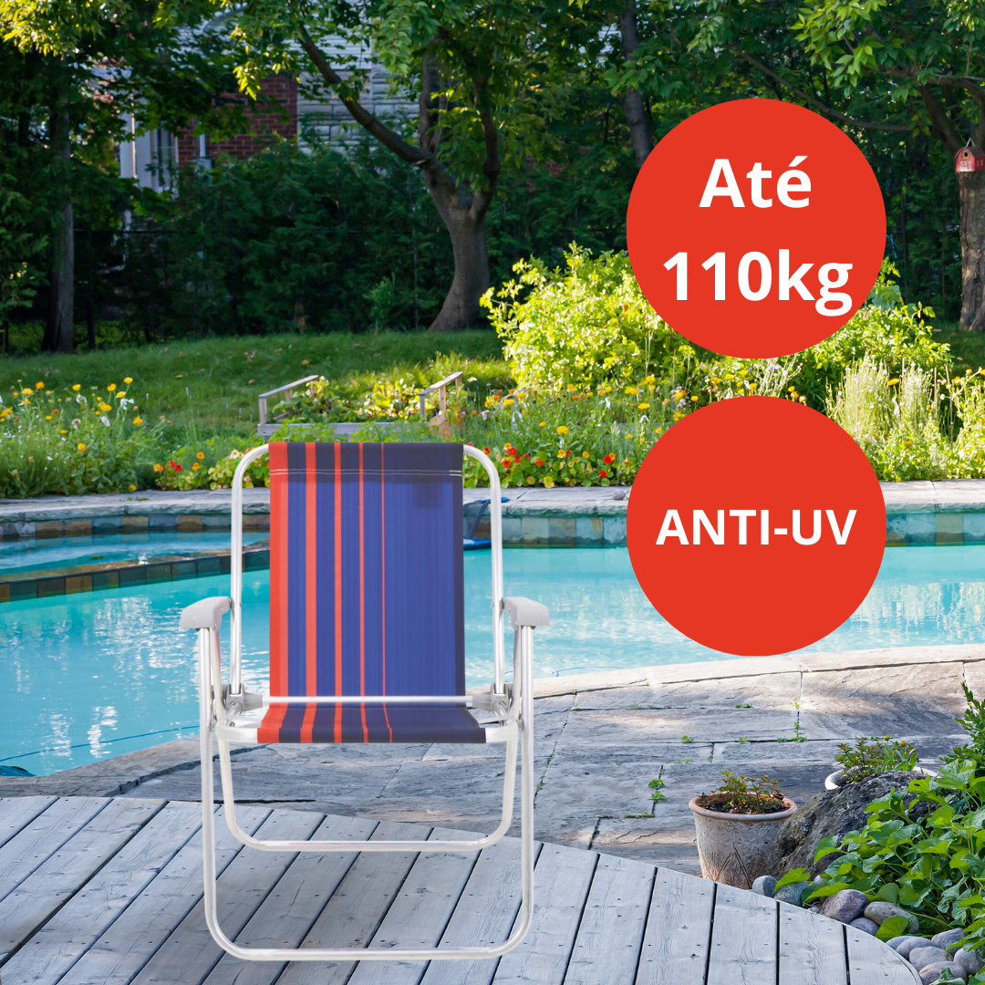 Cadeira De Praia Alta Alumínio Dobrável Confortável Azul Laranja Tramontina Piscina Camping Varanda Acampamento Resistente