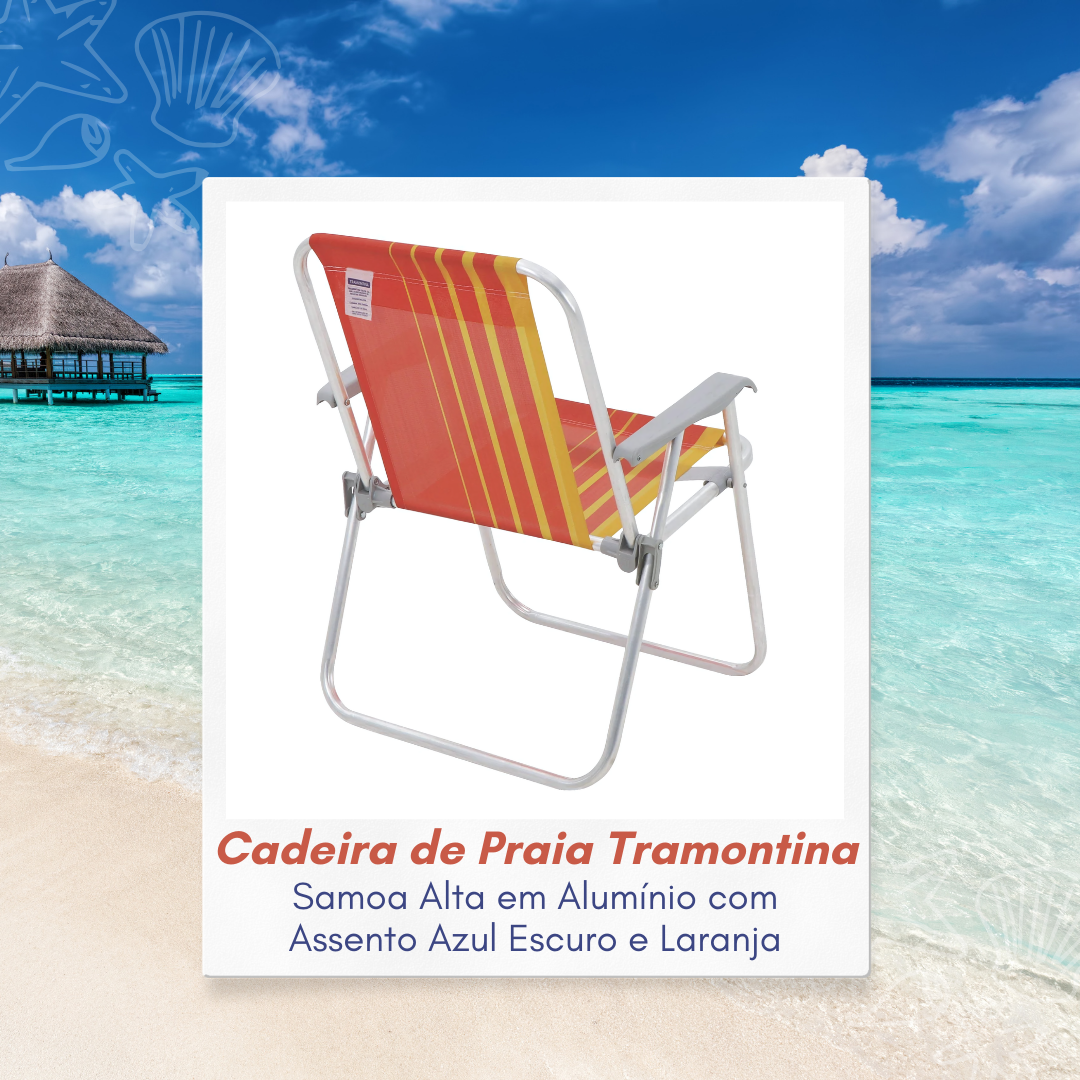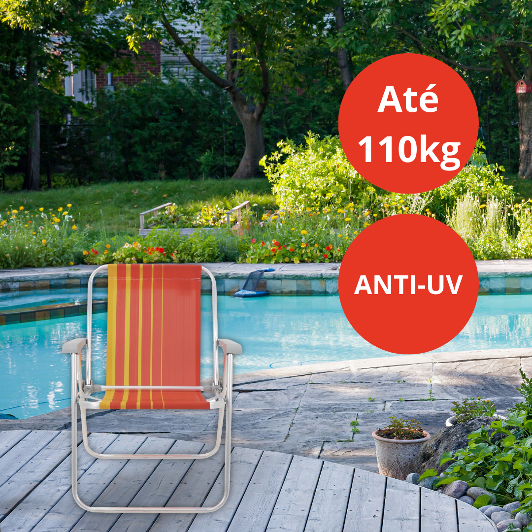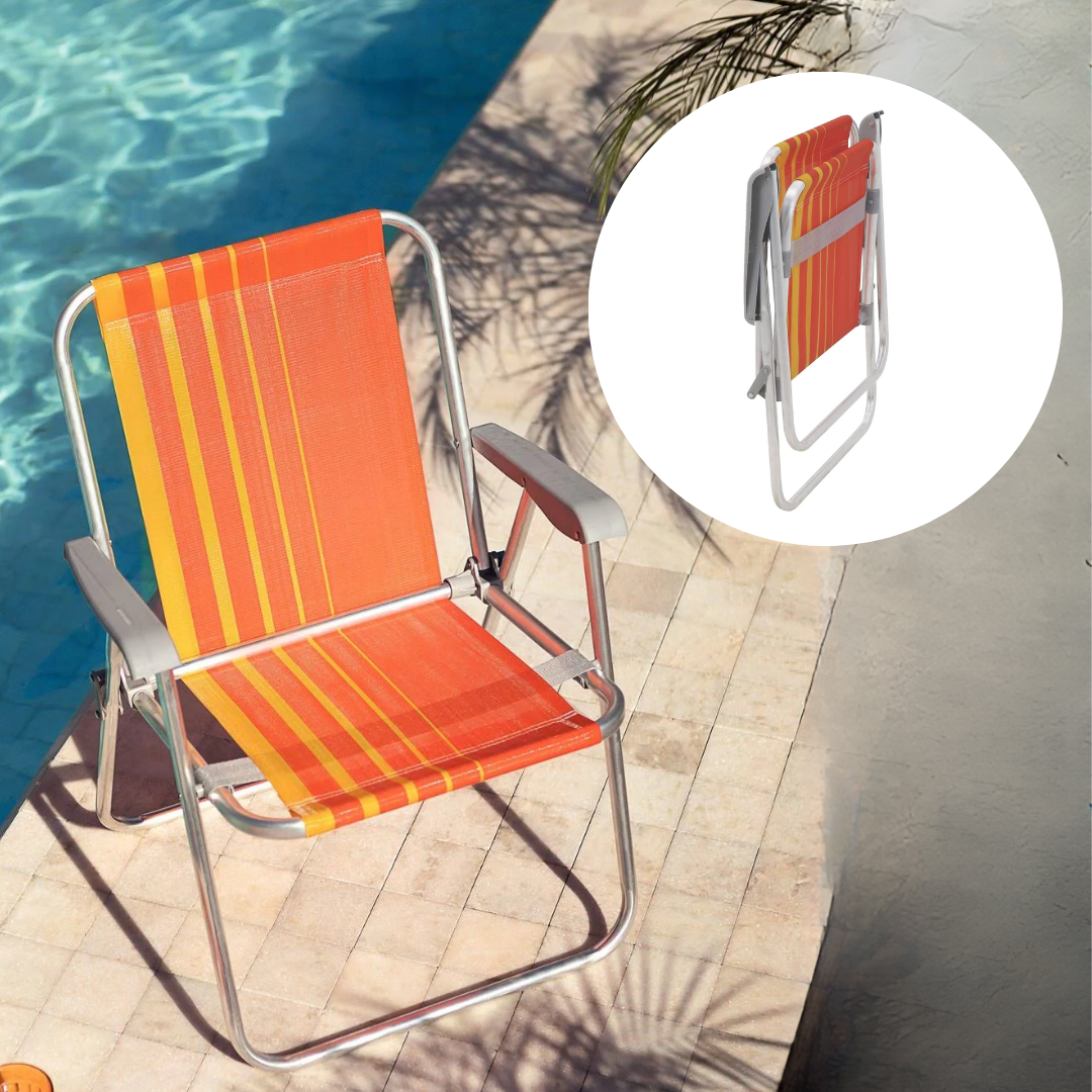 Cadeira De Praia Alta Alumínio Dobrável Confortável Laranja Amarelo Tramontina Piscina Camping Varanda Acampamento Resistente