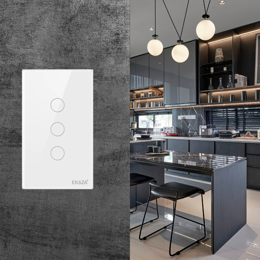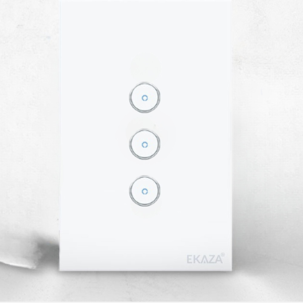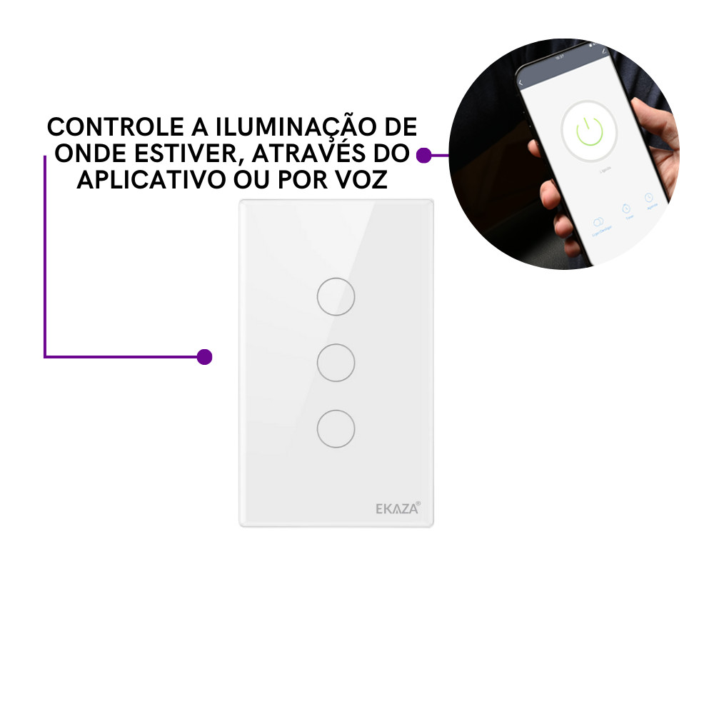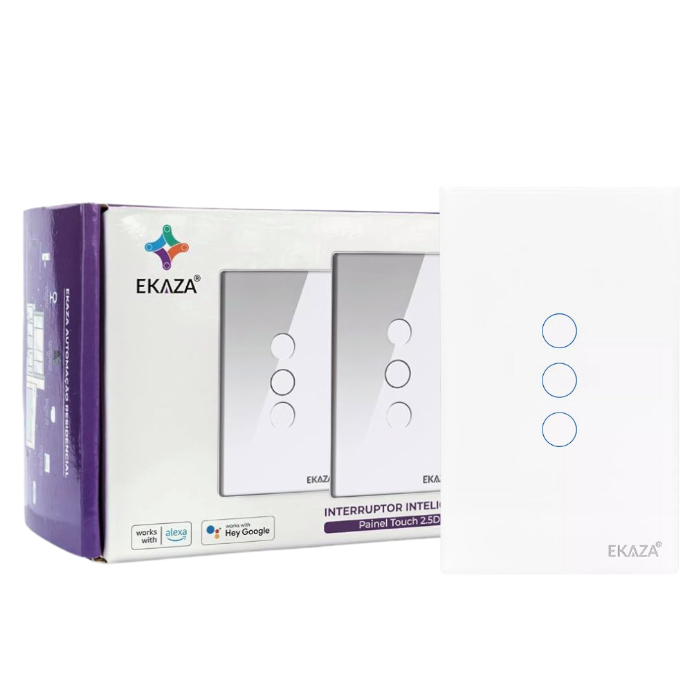 Interruptor Touch 3 Botão Branco 2.5D Wi-fi Ekaza Controle Inteligente Tecnologia Comando Voz Alexa Google Segurança