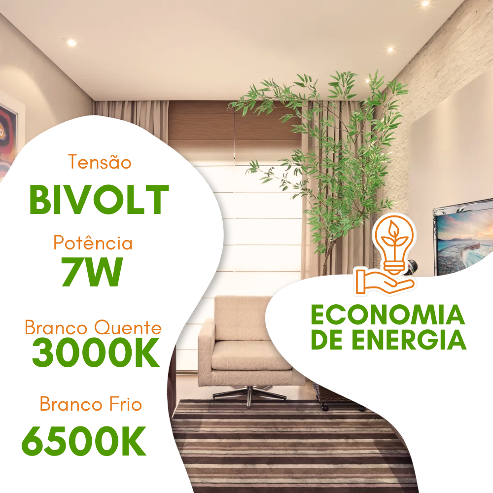 – Eficiência Energética de 7W: Com apenas 7 watts de potência, o spot LED proporciona uma iluminação brilhante enquanto reduz o consumo de energia, ajudando a economizar na conta de luz;