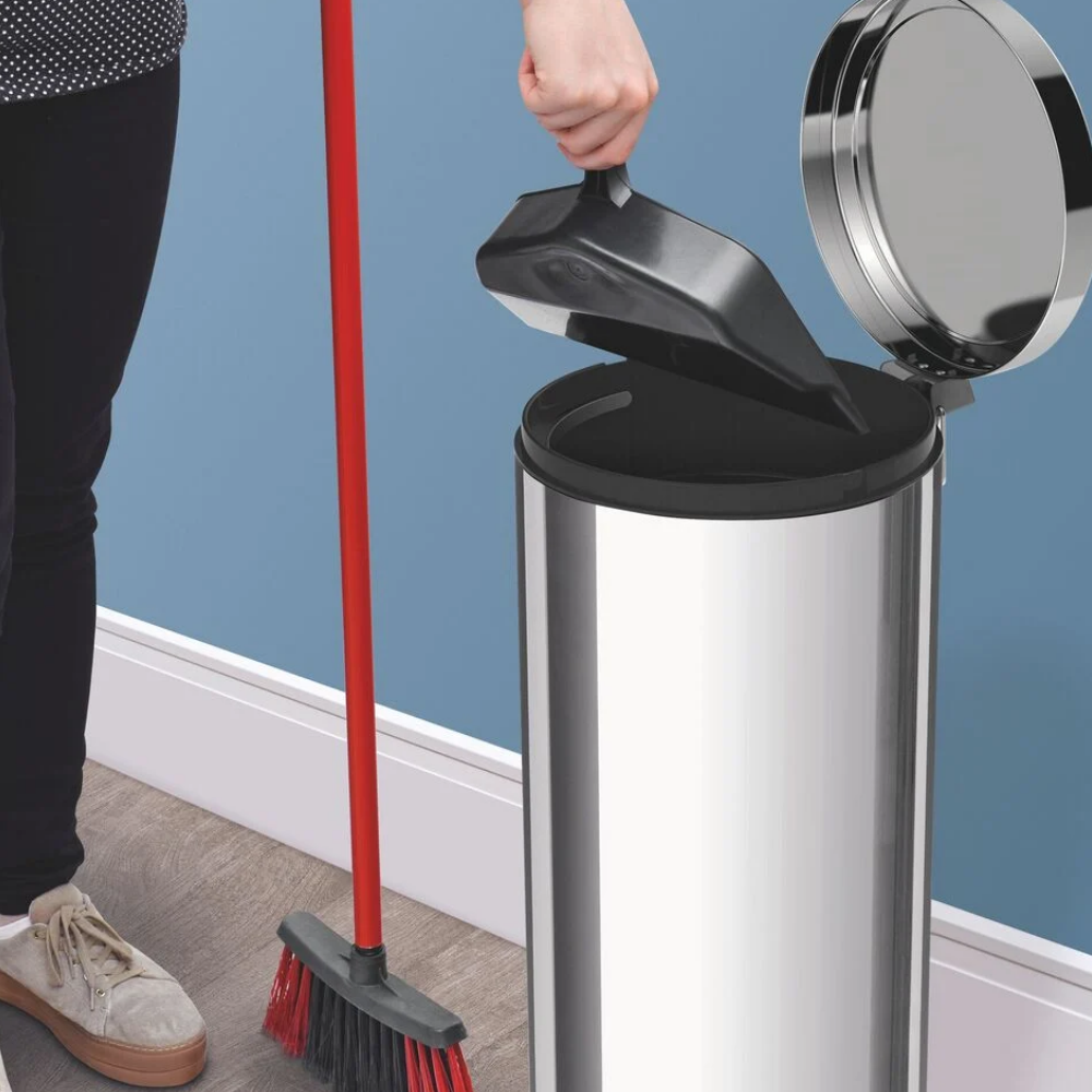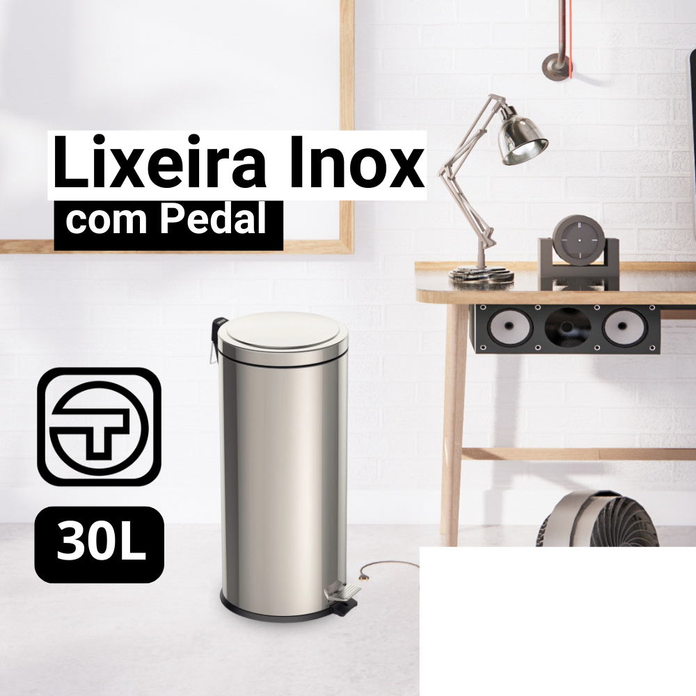 Lixeira Cesto Inox Redonda Com Pedal 30L Tramontina Lixo Alça Pedal Balde Interno Removível Banheiro Cozinha Lavabo Casa