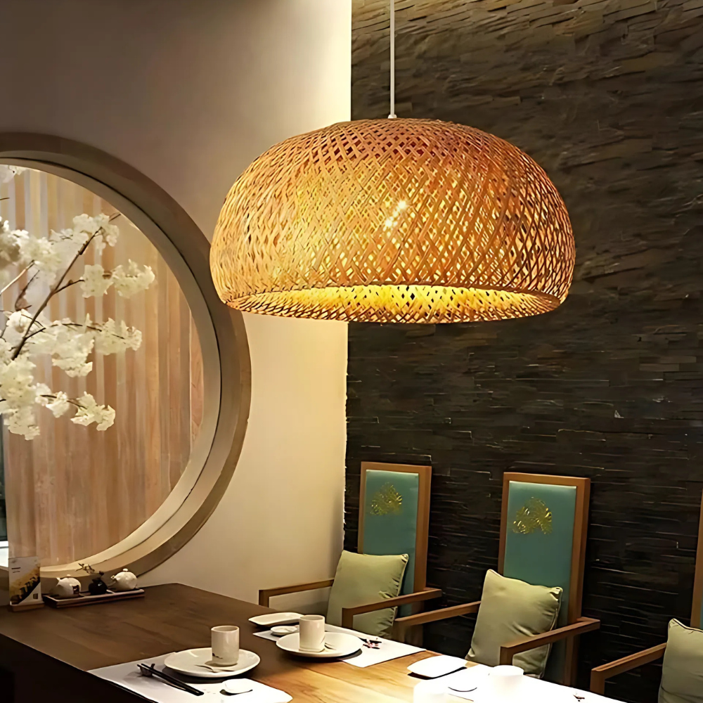 Sendo feita em bambú, essa luminária traz um charme a sua casa, sem tirar o toque de elegância e sofisticação, adaptando-se a diversos ambientes, sendo internos ou externos.