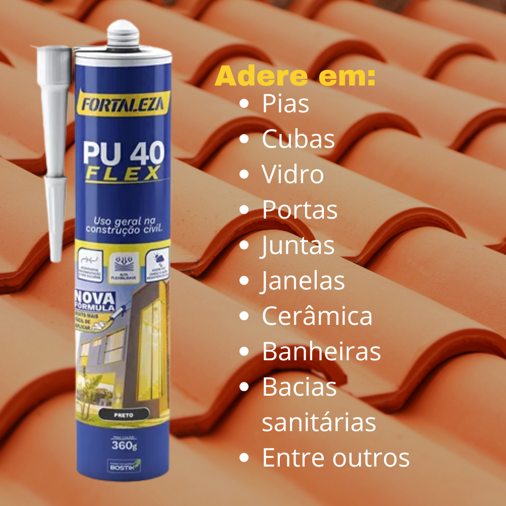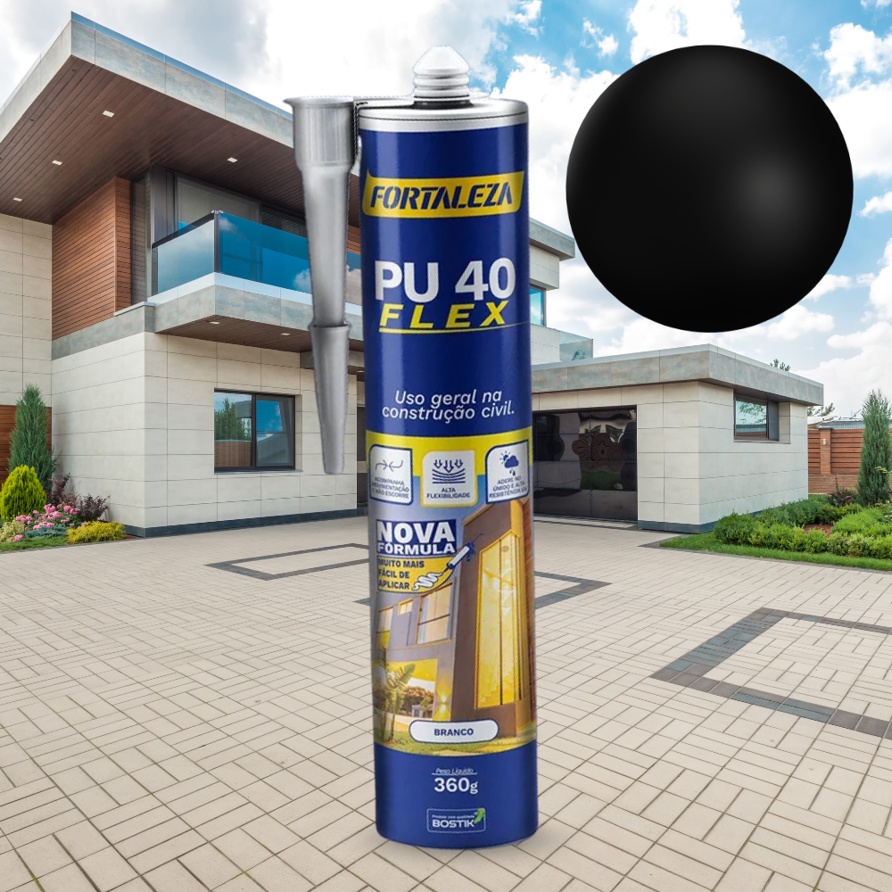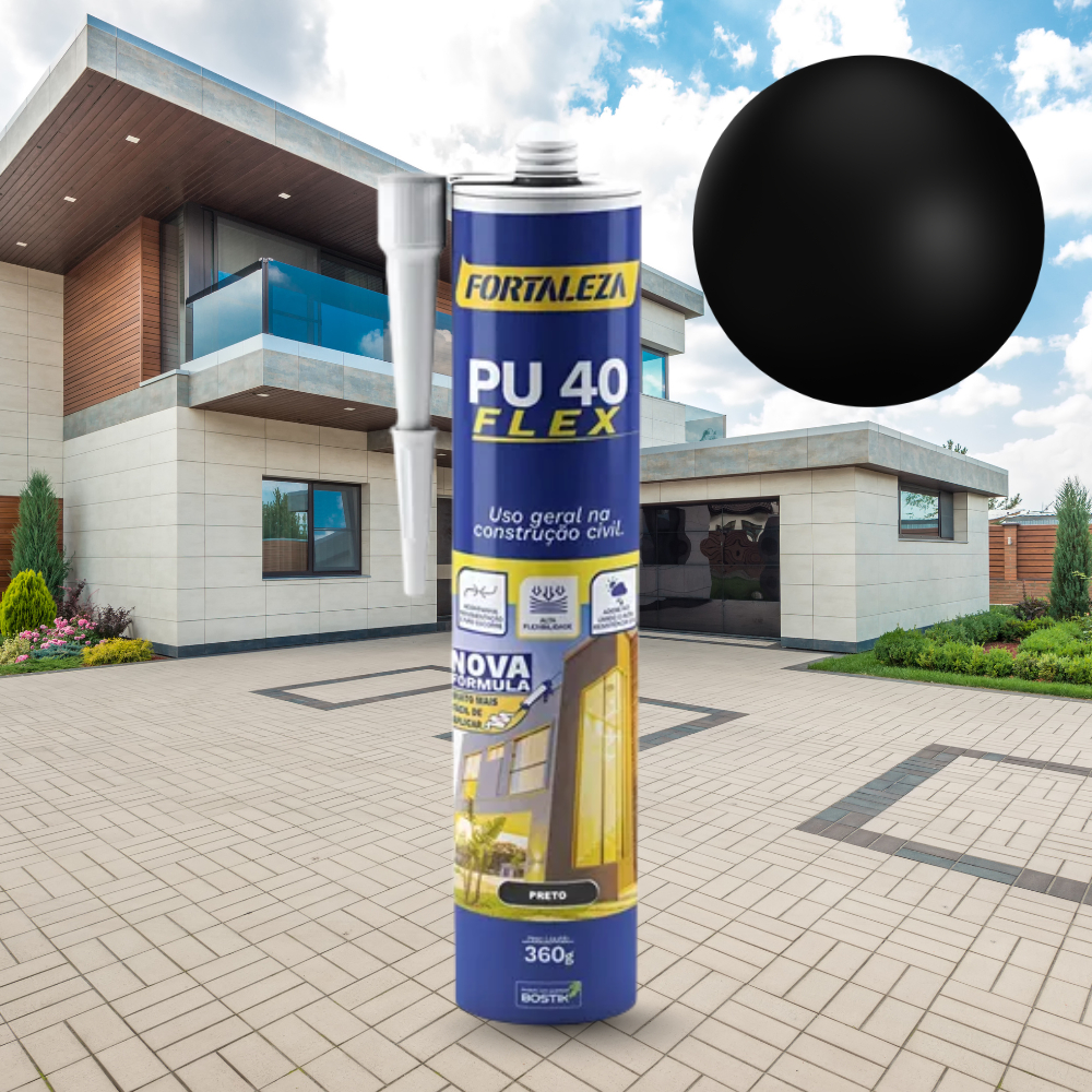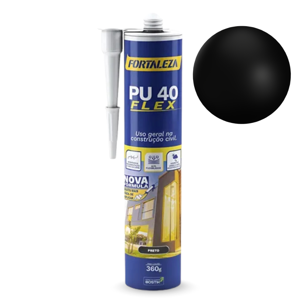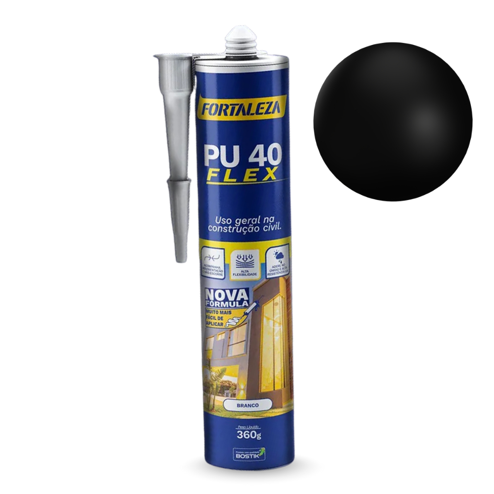 Selante Adesivo PU 40 Flex Cartucho Preto Fortaleza Construção Estrutura Metálica Resistência Flexibilidade